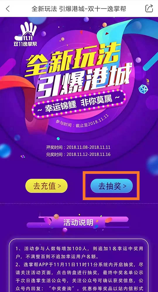 5、充值完成,返回內(nèi)頁,選擇去抽獎,參與抽獎成功!